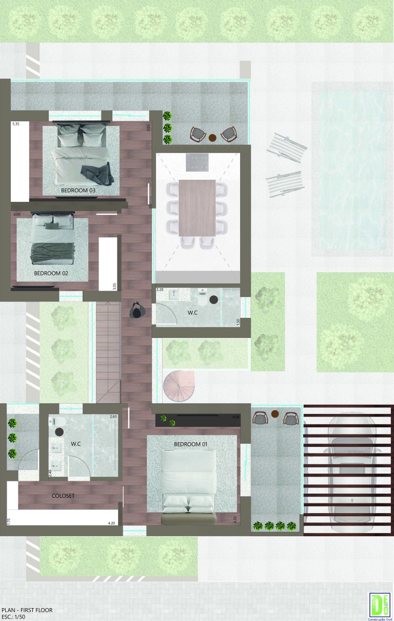 For leisure and well-being, there is a gourmet area and a private swimming pool, perfect for enjoying the tranquility of the Algarve. The multifunctional basement can be used as a game room, a relaxing SPA, or even a cinema room. The individual terraces in the bedrooms offer stunning views and additional space to relax. The garage has space for two cars, ensuring practicality in daily life.